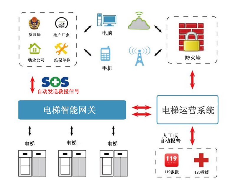 电梯运维系统由电梯运行安全工业智能网关和电梯运行安全物联监控系统平台软件两大部分构成。为用户给予基本资料管理、实时监控、故障告警、故障记录、维保提醒、维保记录、故障统计、维保统计等服务。系统实现了全天候立体式,无死角的监控模式,能够随时查询监控电梯群的运行状态与数据情况,简单、方便、安全、快捷。
