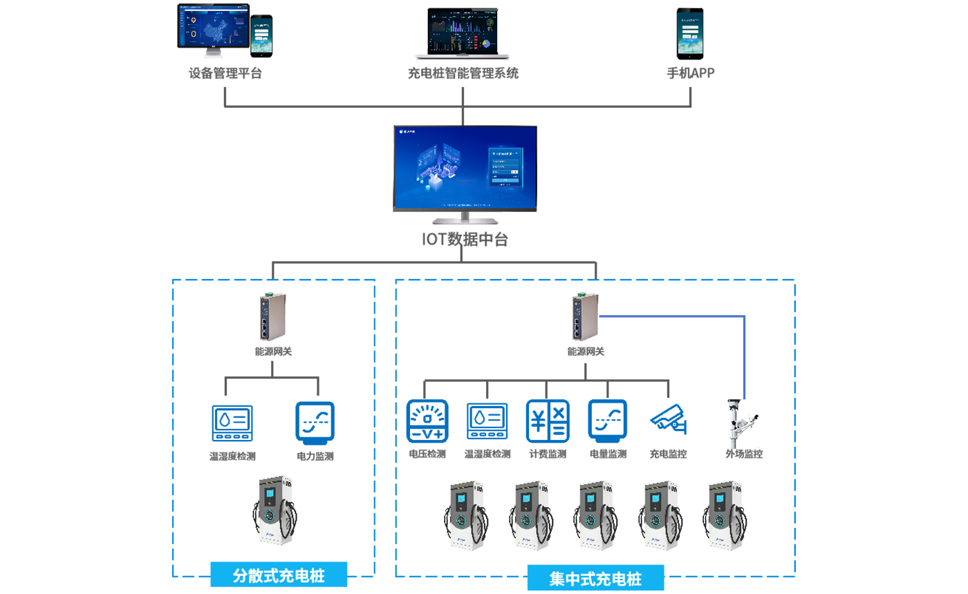 顺利获得威九国际的工业智能网关将充电桩的运行数据(如充电状态、电压、电流、故障信息等)采集并实时传输至充电桩远程监控管理平台。平台对充电桩状态进行监测,统计充电数据,当充电桩出现故障时及时发出预警并给予故障处理指导。同时支持远程参数配置、用户服务管理和运营数据分析功能。