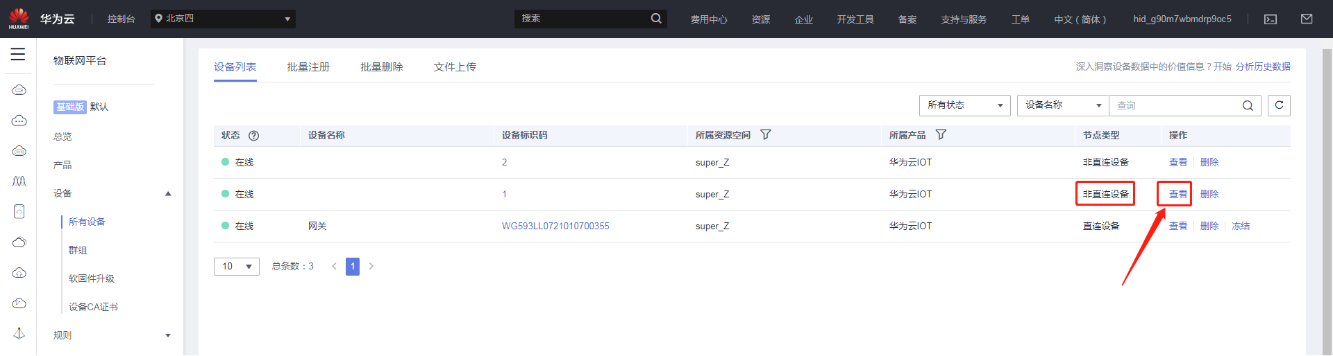 网关端“子设备序号”对应华为云IOT非直连设备的“设备ID”;