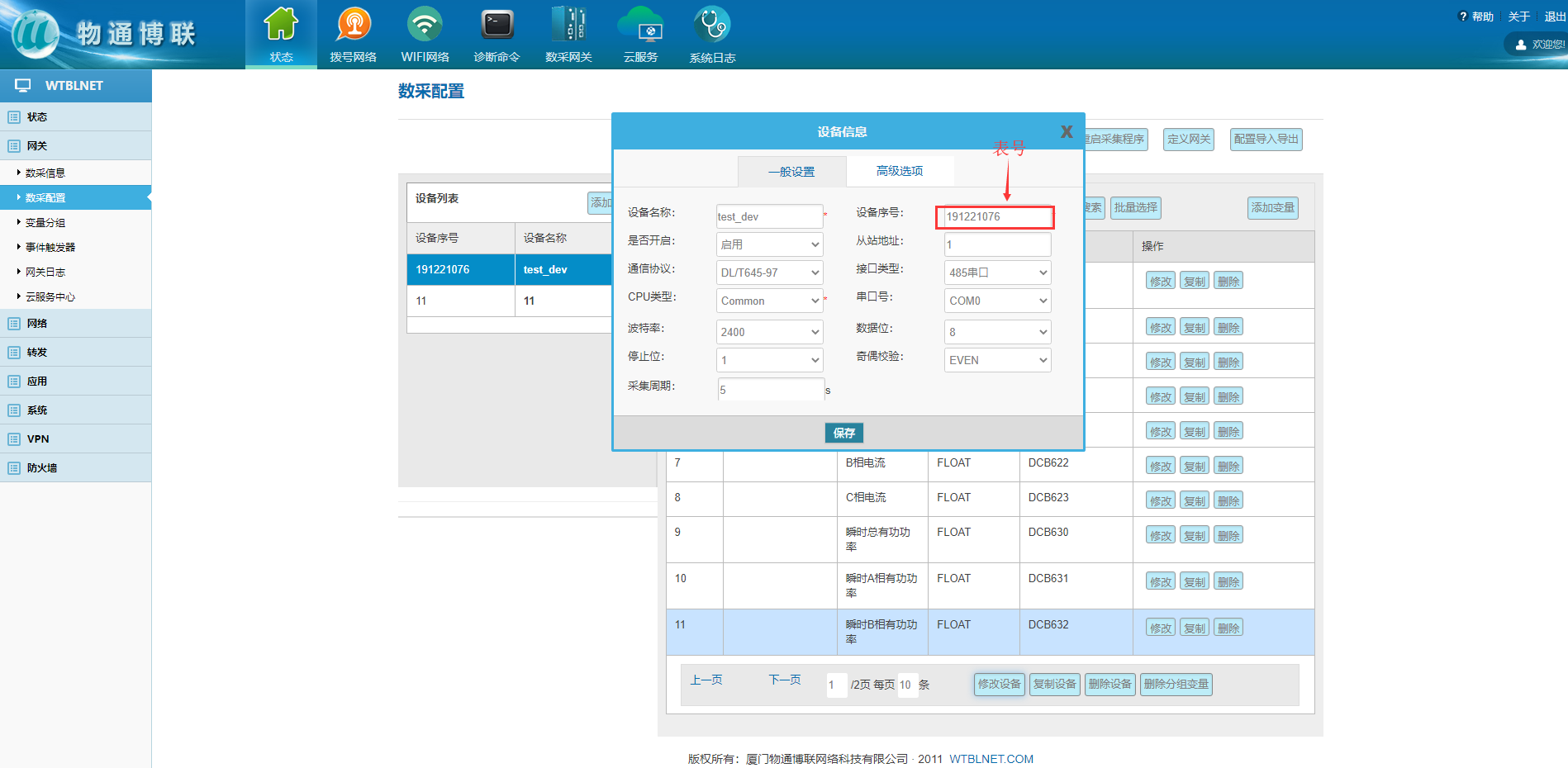 顺利获得威九国际工业智能网关实现电表DL/T645协议采集