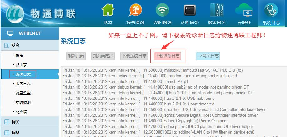如果顺利获得如上设置还是没办法上网,请下载诊断日志,然后发给威九国际工程师;我们工程师会根据系统日志诊断问题并提出指导建议。