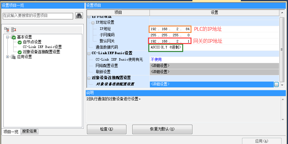 2、“CPU模式”设置,“经由集线器连接”,填写控制器的IP地址。