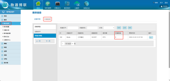 等待右下角弹出成功提示框后,点击“数采信息”->“变量数据”,即可在“变量值”一列查看采集结果。