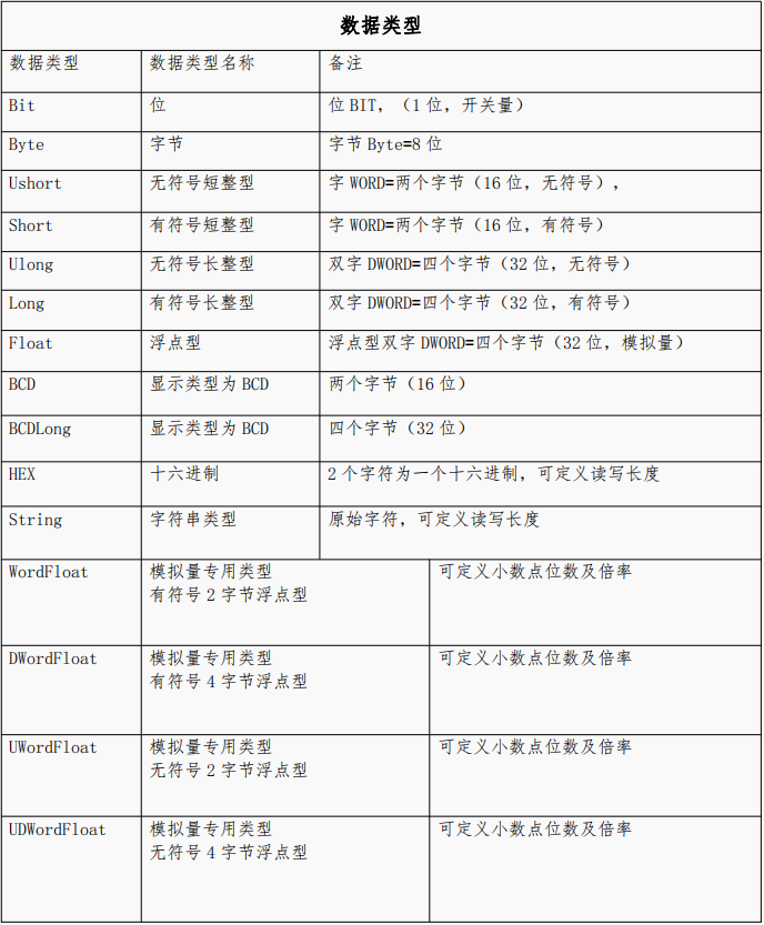 下载中心 视频中心 常见问题 售后服务 工业网关 设备快线 数据云平台 联网设备 问答百科 网关支持采集的数据类型有哪些? 时间:2022-10-26 09:39:53 点击:5440 关键词:工业网关,数据采集,数据类型 问题:网关支持采集的数据类型有哪些? 回答:网关支持采集的数据类型如下表 : 上一篇:工业智能网关会运行时会自动重启怎么处理? 下一篇: 网关采集modbus协议设备时,寄存器类型和地址如何选择?