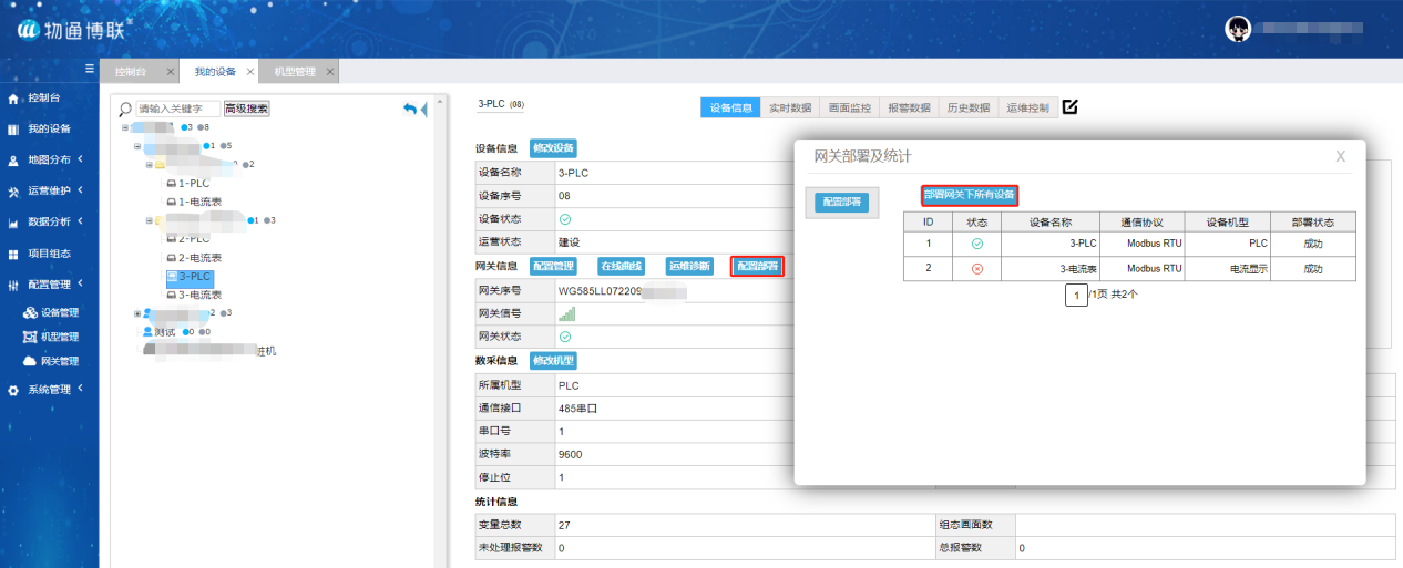 下载中心 视频中心 常见问题 售后服务 工业网关 设备快线 数据云平台 联网设备 问答百科 网关需要将数据上报到威九国际云平台需要哪些配置? 时间:2022-10-26 09:39:53 点击:5226 关键词:工业网关,云平台,数据上报,网关配置 问题:网关需要将数据上报到威九国际云平台需要哪些配置? 回答: (1)确认网关处于联网状态 (2)网关云服务中心里添加威九国际云平台的中心 (3)顺利获得威九国际申请的账号登陆云平台(iot.WideIOT.com) (4)在我的设备目录树上添加设备 (5)填写设备详细参数以及添加网关序列号及所属机型 (6)在添加好的所属机型里面添加咱们需要上传的数据 (7)保存之后点击我的设备—目录树下建好的设备—配置部署 (8)最后建好的设备界面—实时数据查看 上一篇:网关采集modbus协议设备时,寄存器类型和地址如何选择? 下一篇: 工业智能网关串口RS485和RS232的接线方式?