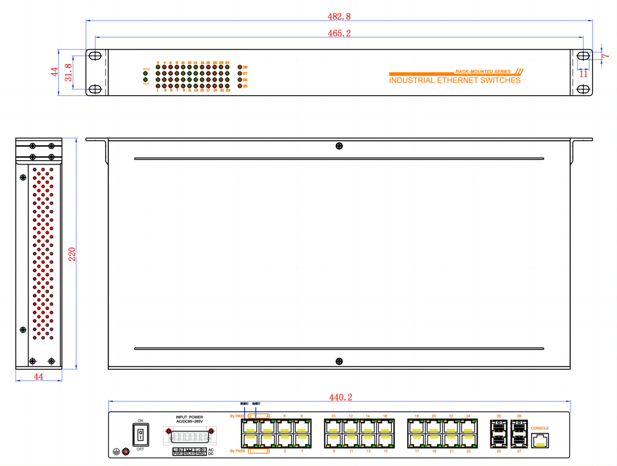 外形尺寸 宽×高×深:482.8×44×220mm