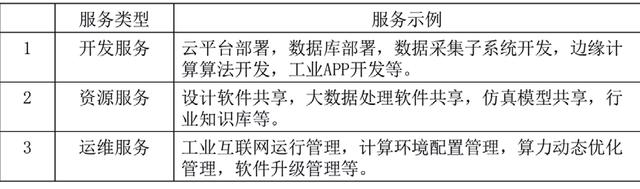 服务化也是工业互联网产业开展的重要体现。这是产业链延伸的必然趋势,也是引入云计算、边缘计算后可支配算力大幅度提升的必然结果。当然,服务化除了需要平台化技术的支撑外,还需要从上述三个方面的需求出发,建立并持续完善服务的形式与内含。一些具体的服务示例如表1所示。