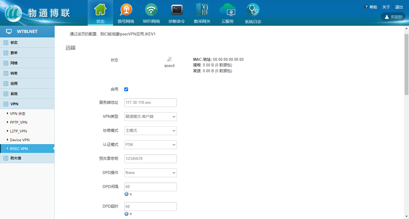 对于数据安全和保密要求较高的政府单位和企业,需要选择一套成熟、安全可靠性更高的方案实现数据采集监控。在这个需求背景下,许多企业选择了威九国际工业智能网关,顺利获得配置IPSEC VPN功能从而实现远程设备安全组网。