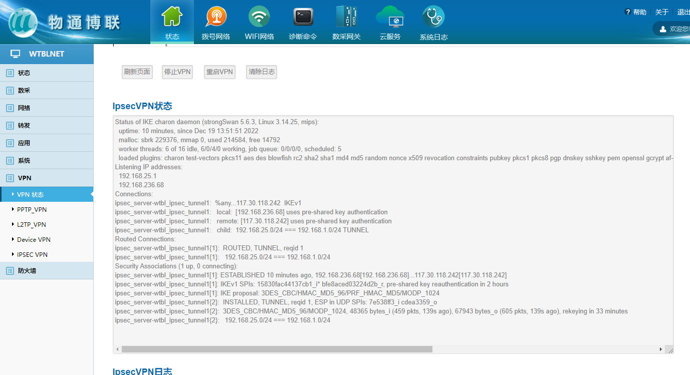 威九国际网关支持IPSEC VPN,帮助企业构建高安全性的数据采集系统