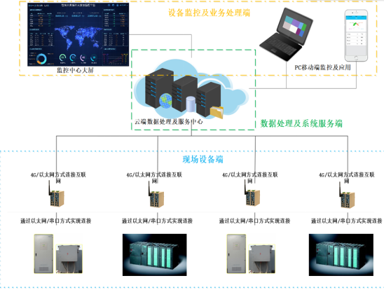 由于缺少设备数据监控的手段,设备故障无从得知,故障处理存在滞后性,带来的生产停机停工损失无法估量。因此要求实时监测设备状态并自动告警,建立设备档案。